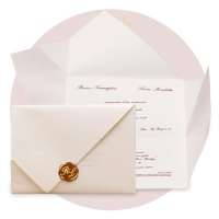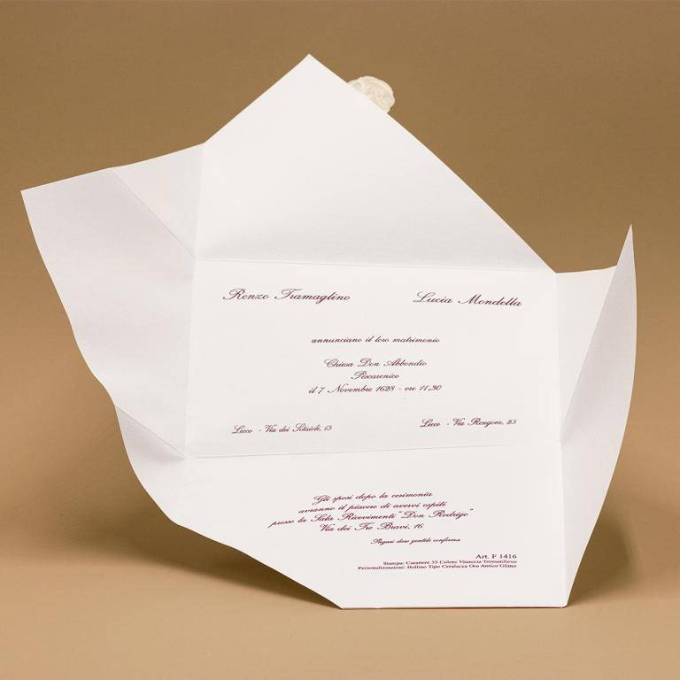 Partecipazione di nozze piegata a busta con bollino ceralacca