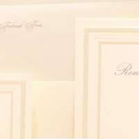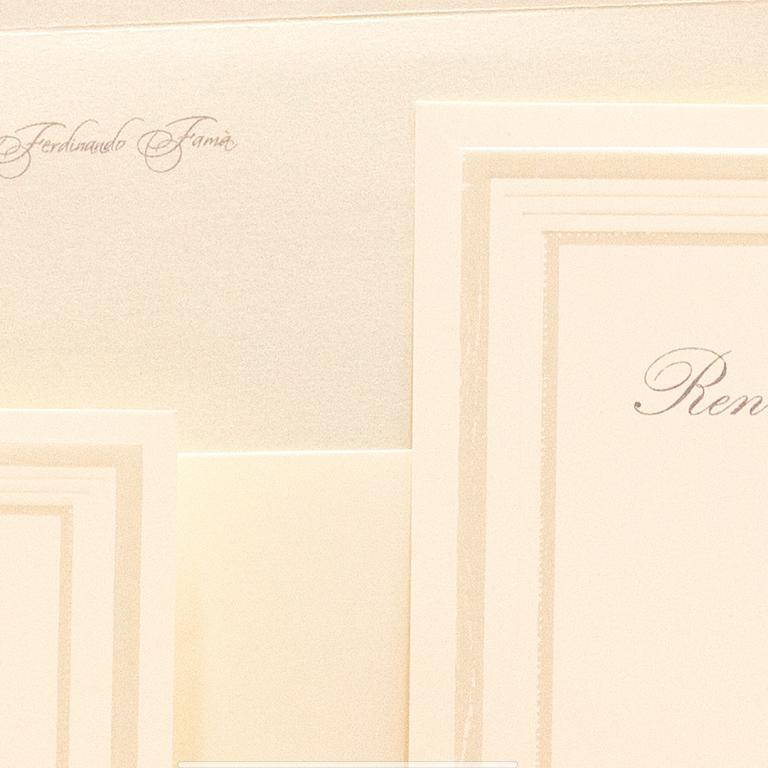 Partecipazioni di matrimoni rettangolare con cornici perlate, personalizzazione nomi degli sposi a secco al centro. Invito abbinato con le stesse cornici perlate.