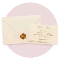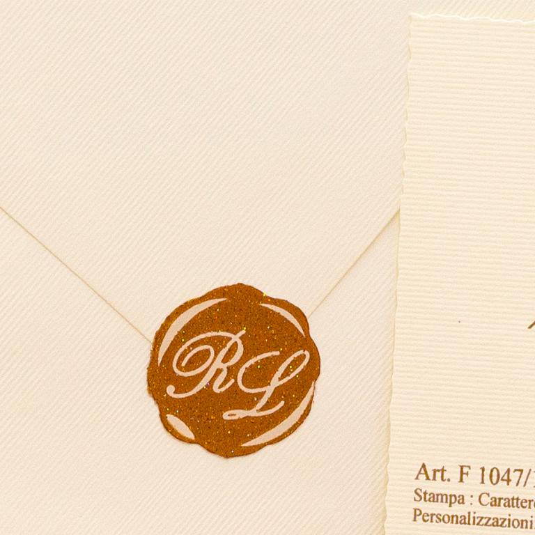Busta rettangolare a taglio punta con talloncino rettangolare con personalizzazione di iniziali in termorilievo.