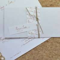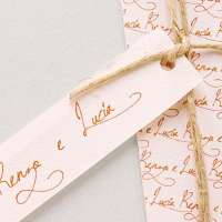 Partecipazioni di matrimonio legata da fascia con nomi e spago