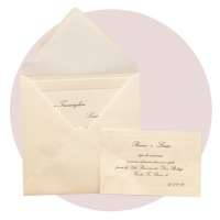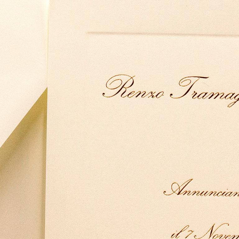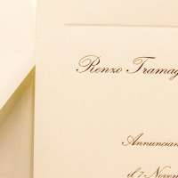 Busta quadrata a taglio punta con personalizzazione di iniziali in oro rilievo.