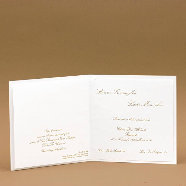 Busta quadrata a taglio punta con personalizzazione di iniziali in oro a rilievo.