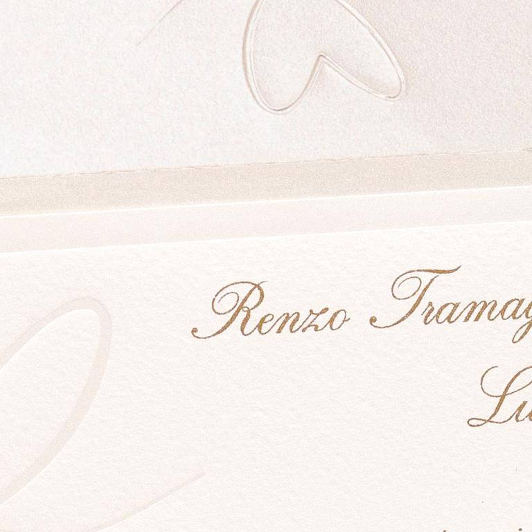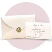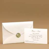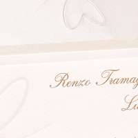 Partecipazioni di matrimonio con cuori e cornice in perla rilievo, invito semplice senza decori. Busta a taglio punta realizzata appositamente per questa partecipazione con cuore a secco e bollino ceralacca adesivo con personalizzazione di iniziali sposi.