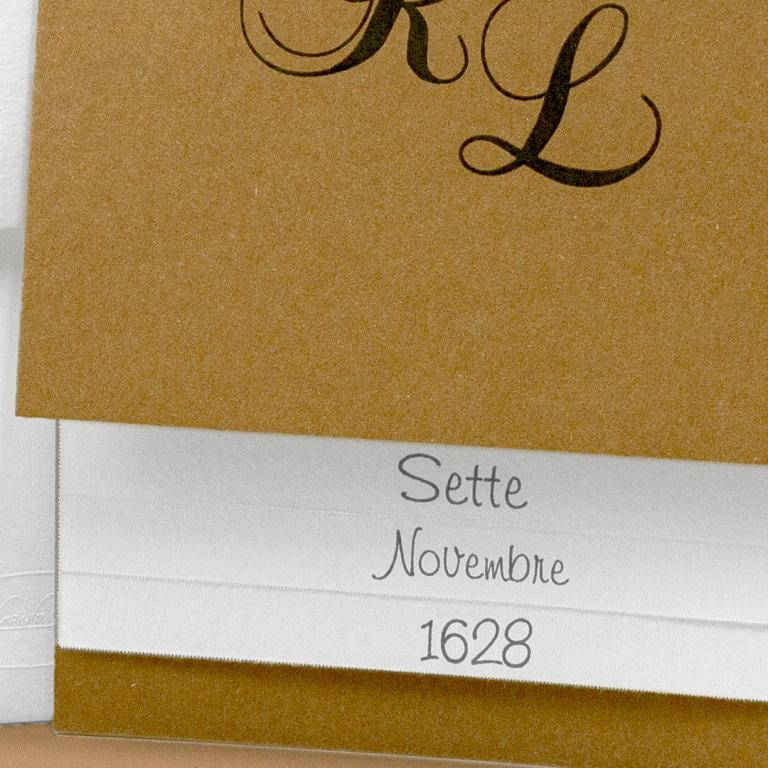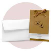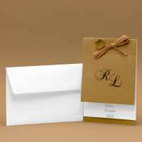 Partecipazioni di nozze con iniziali e fogli legati da raffia
