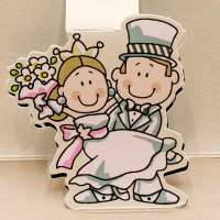 Partecipazioni di nozze pop-up con sposi su foglio piegato a tre