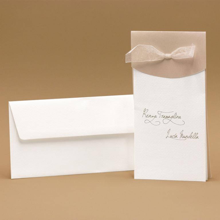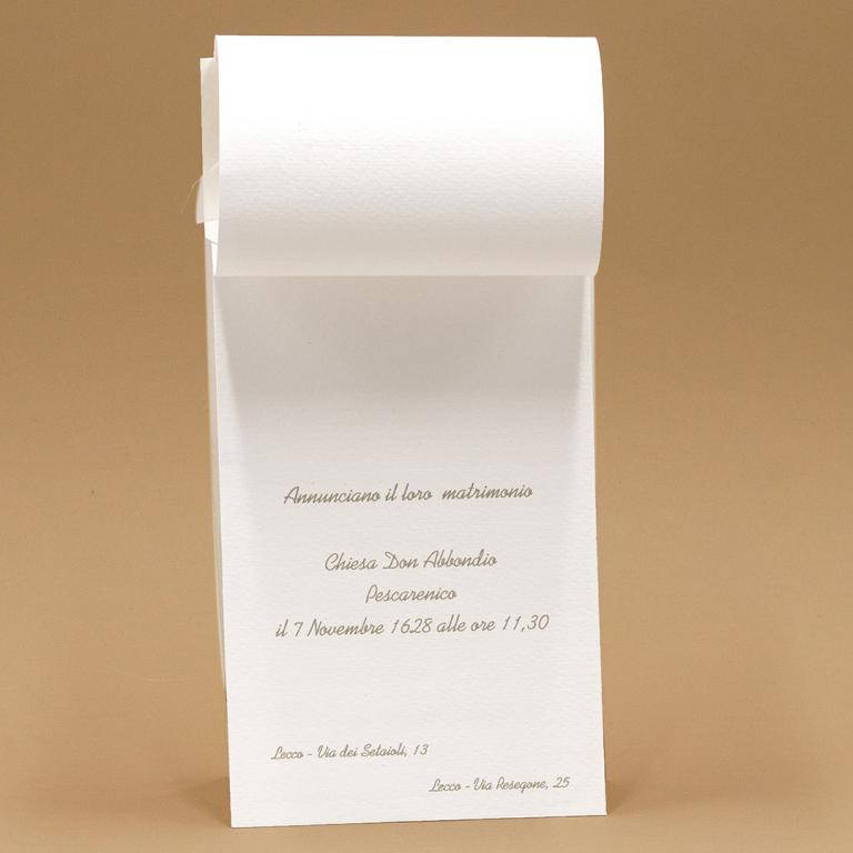 Partecipazioni di nozze verticale a tre fogli con nastrino