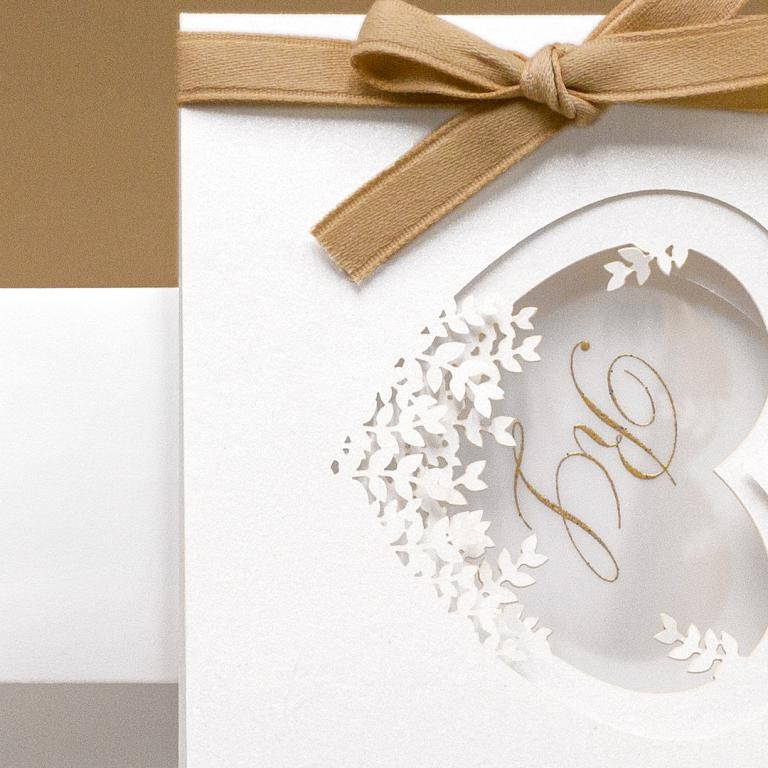 Partecipazione matrimonio con cuore intagliato a laser cod. F1626