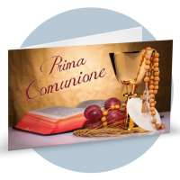 Bigliettino Bomboniera Prima Comunione con simboli sacri cod. BFF0064