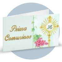 Bigliettino Bomboniera Prima Comunione con simboli sacri cod. BFF0082