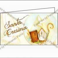 Bigliettini bomboniera in carta bianca prefustellati in f.to A4, immagine su fronte a colori che rappresenta i simboli della cresima (bastone pastorale, mitra, colomba e bibbia), ideale per cresima. Minimo d'ordine 20 pz, ordinabili in multipli di 20 pz.