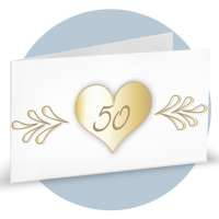 Bigliettino bomboniera in carta bianca liscia, stampa a caldo oro di un cuoricino con all'interno il numero 50. Minimo d'ordine 20 pz, ordinabili in multipli di 20 pz.