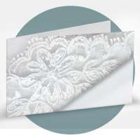 Bigliettino Bomboniera matrimonio in carta bianca liscia, con stampa fiori macramè sui toni del grigio. Minimo d'ordine 20 pz, ordinabili in multipli di 20 pz.