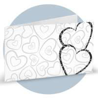 Bigliettino Bomboniera matrimonio in carta bianca liscia e stampa di cuori sui toni del grigio e del nero. Minimo d'ordine 20 pz, ordinabili in multipli di 20 pz.