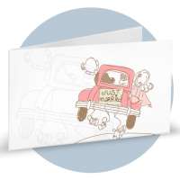 Bigliettino Bomboniera matrimonio in carta bianca, con stampa di una macchina e con scritta "just married". Minimo d'ordine 20 pz, ordinabili in multipli di 20 pz.