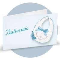 Bigliettini di bomboniera in cartoncino bianco prefustellati in f.to A4, stampa su fronte a colori di un bavaglino con fiocchetto azzurro, ideale per battesimo maschietto. Minimo d'ordine 20 pz, ordinabili in multipli di 20 pz.