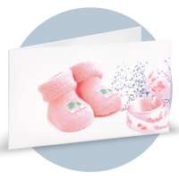 Bigliettini di bomboniera in cartoncino bianco prefustellati in f.to A4, stampa su fronte a colori scarpette rosa, ideale per nascita femminuccia. Minimo d'ordine 20 pz, ordinabili in multipli di 20 pz,