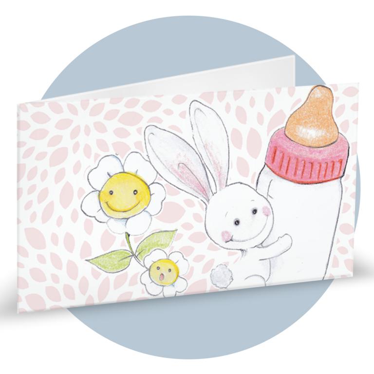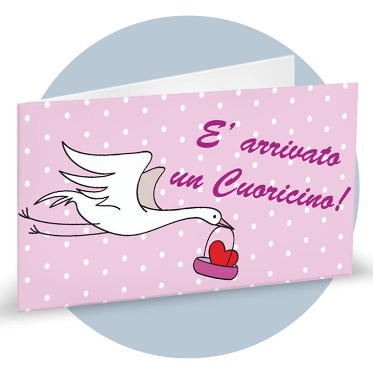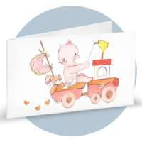 Bigliettini di bomboniera in cartoncino bianco prefustellati in f.to A4, stampa su fronte a colori di una bimba su trenino, ideale per nascita femminuccia. Minimo d'ordine 20 pz, ordinabili in multipli di 20 pz.