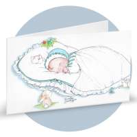 Bigliettini di bomboniera in cartoncino bianco prefustellati in f.to A4, stampa su fronte a colori di un bimbo che dorme, ideale per nascita maschietto. Minimo d'ordine 20 pz, ordinabili in multipli di 20 pz.
