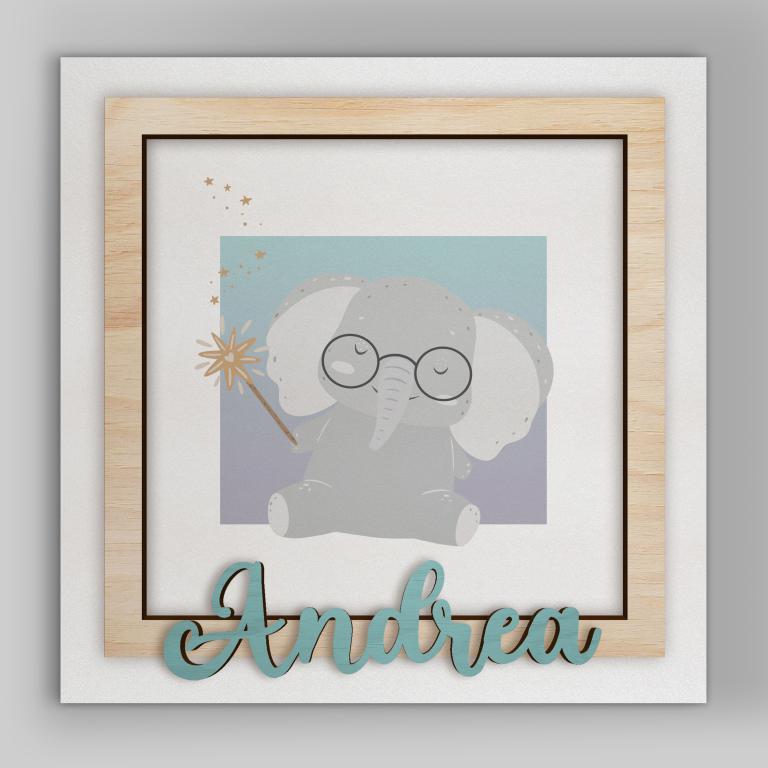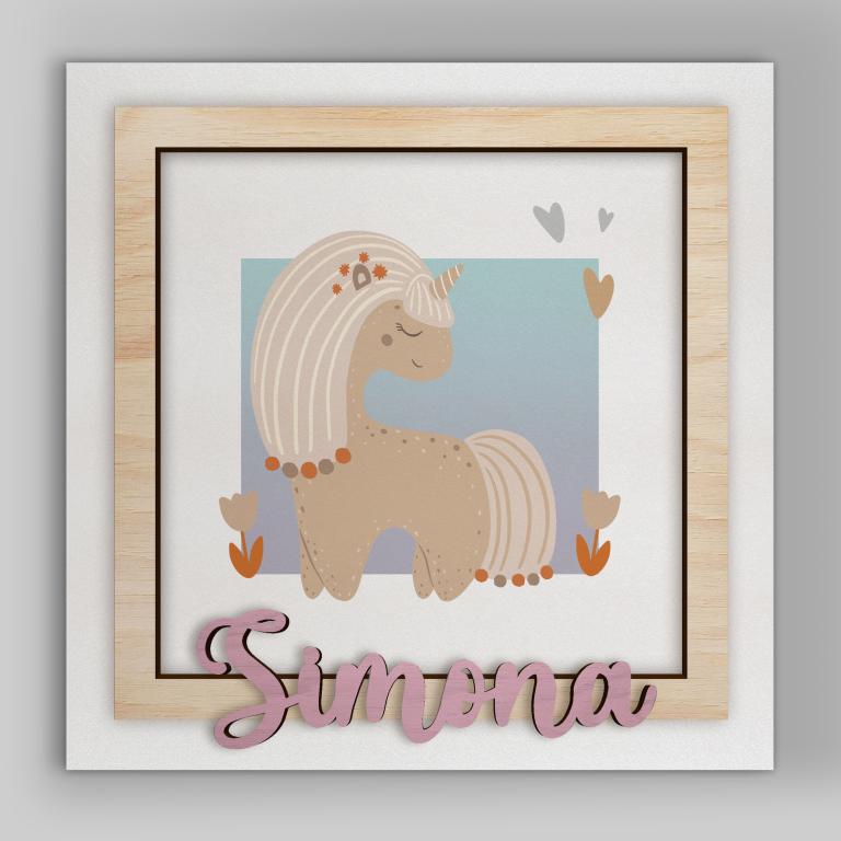 Quadretto personalizzato in legno con applicazioni grafica modelloFFCUTE6: Realizzabile sia rosa per femminuccia che azzurro per maschietto