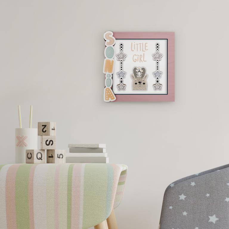 Quadretto personalizzato in legno con applicazioni grafica modello FFCUTE9: Realizzabile sia rosa per femminuccia che azzurro per maschietto