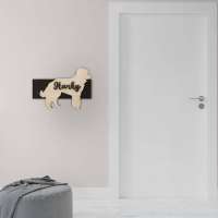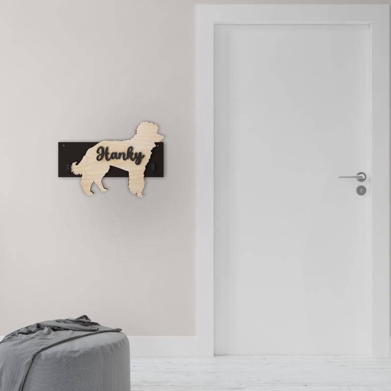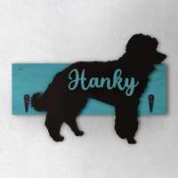 Porta guinzaglio razza cane Barbone nano personalizzato con il nome del tuo cane. Base: legno 6mm, sagoma razza legno 4mm e nome cane legno 6 mm. Sono disponibili diverse varianti di colori quali: Variante A base Nero - Cane Legno - Nome nero Variante B base Legno - Cane Nero - Nome Legno Variante C base Legno - Cane Nero - Nome Blu Variante D base Blu - Cane Nero - Nome Blu Variante E base Rosa - Cane Nero - Nome Rosa