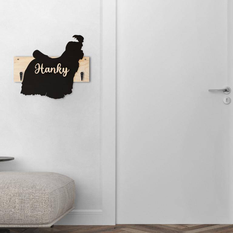 Porta guinzaglio razza cane Maltese personalizzato con il nome del tuo cane. Base: legno 6mm, sagoma razza legno 4mm e nome cane legno 6 mm. Sono disponibili diverse varianti di colori quali: Variante A base Nero - Cane Legno - Nome nero Variante B base Legno - Cane Nero - Nome Legno Variante C base Legno - Cane Nero - Nome Blu Variante D base Blu - Cane Nero - Nome Blu Variante E base Rosa - Cane Nero - Nome Rosa