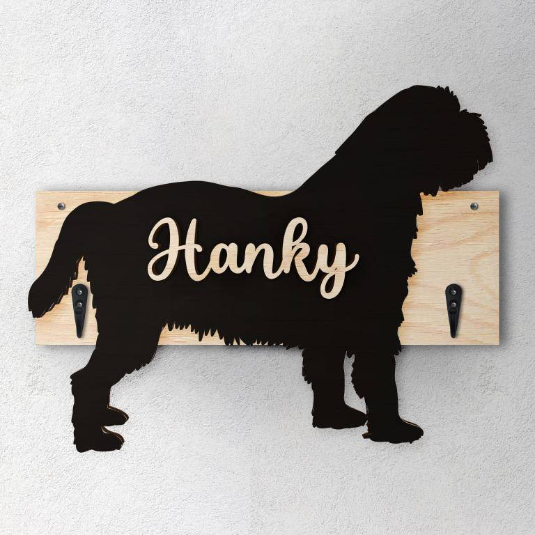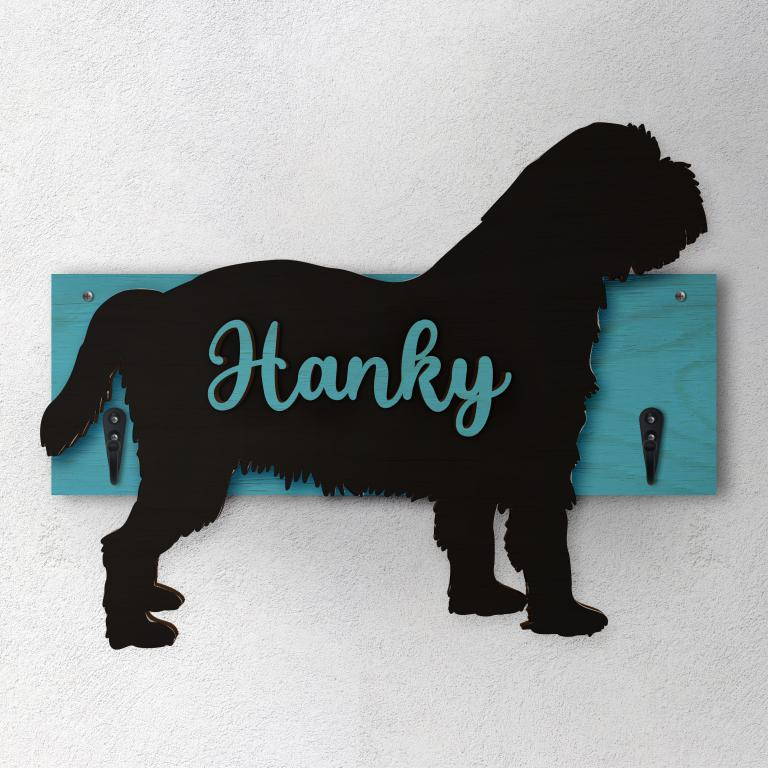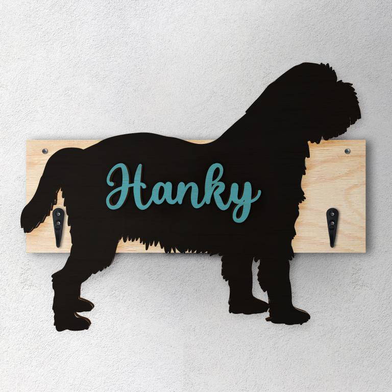 Porta guinzaglio razza cane Griffone belga personalizzato con il nome del tuo cane. Base: legno 6mm, sagoma razza legno 4mm e nome cane legno 6 mm. Sono disponibili diverse varianti di colori quali: Variante A base Nero - Cane Legno - Nome nero Variante B base Legno - Cane Nero - Nome Legno Variante C base Legno - Cane Nero - Nome Blu Variante D base Blu - Cane Nero - Nome Blu Variante E base Rosa - Cane Nero - Nome Rosa