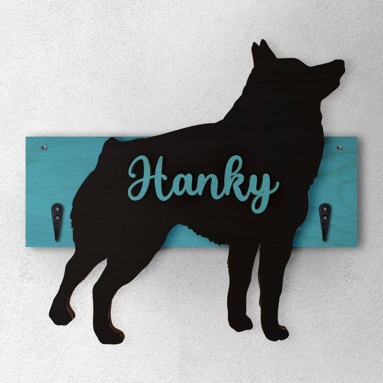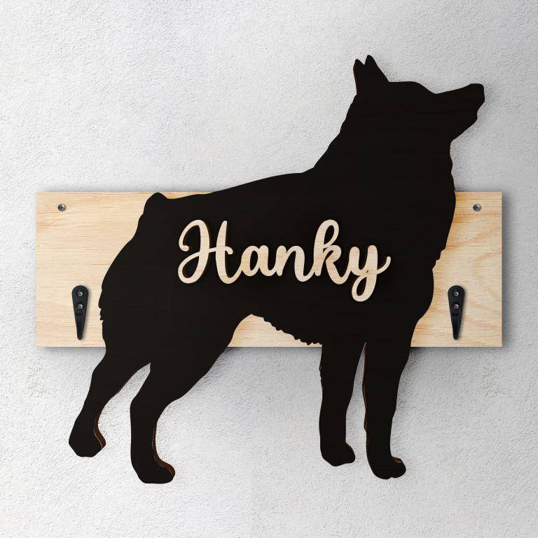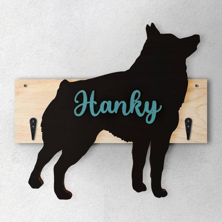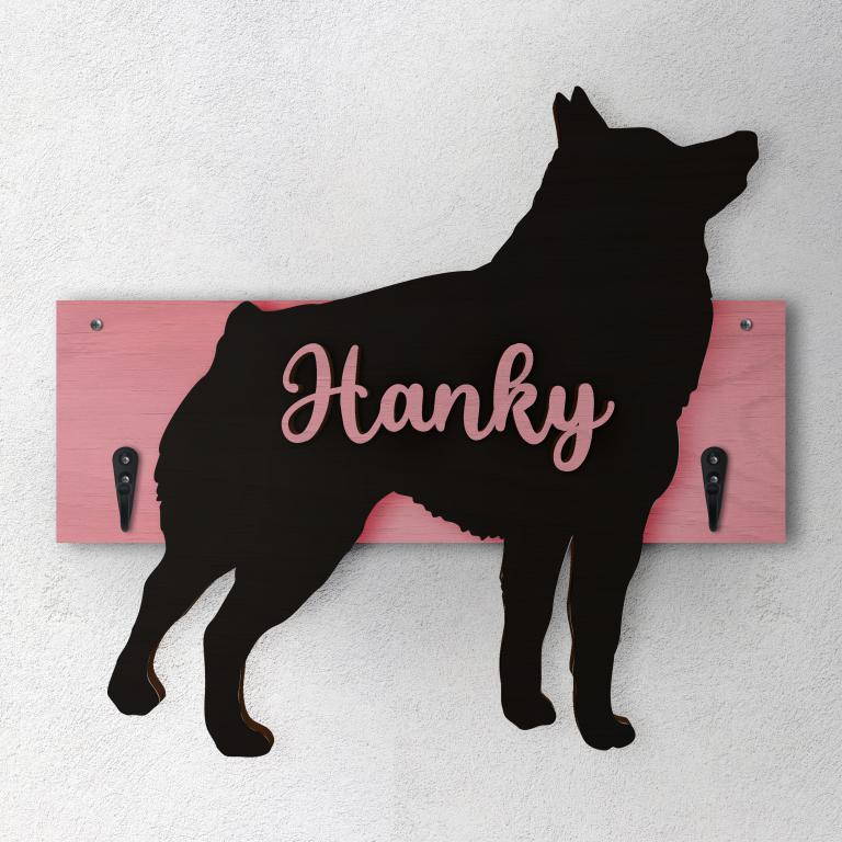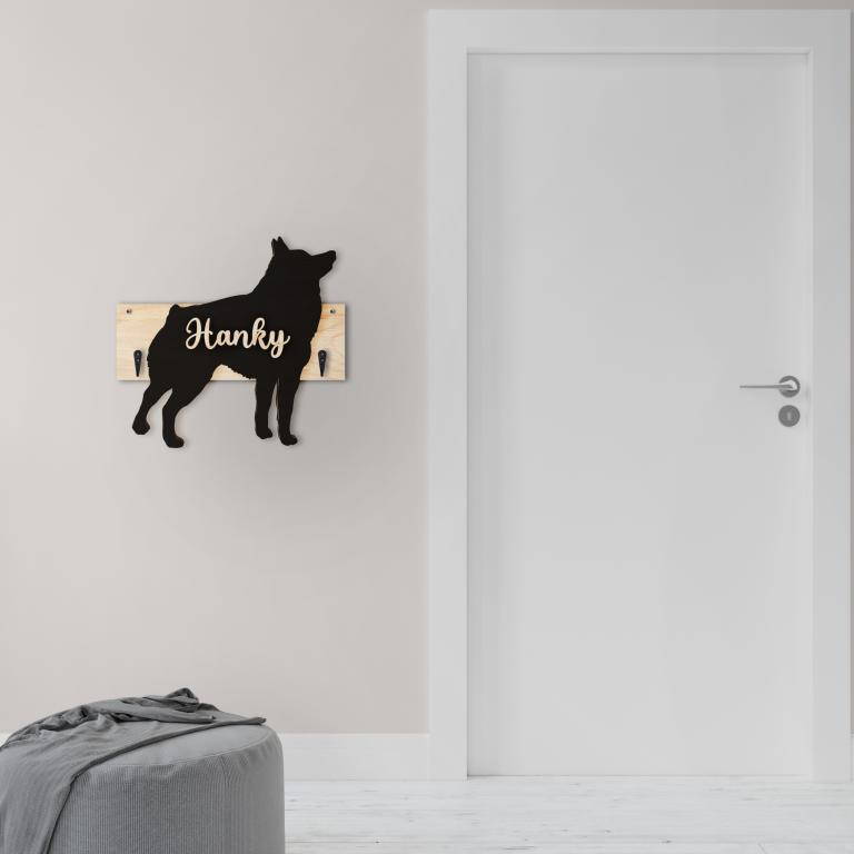Porta guinzaglio razza cane Schipperke personalizzato con il nome del tuo cane. Base: legno 6mm, sagoma razza legno 4mm e nome cane legno 6 mm. Sono disponibili diverse varianti di colori quali: Variante A base Nero - Cane Legno - Nome nero Variante B base Legno - Cane Nero - Nome Legno Variante C base Legno - Cane Nero - Nome Blu Variante D base Blu - Cane Nero - Nome Blu Variante E base Rosa - Cane Nero - Nome Rosa