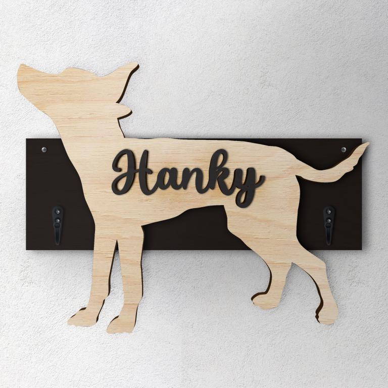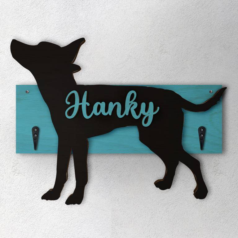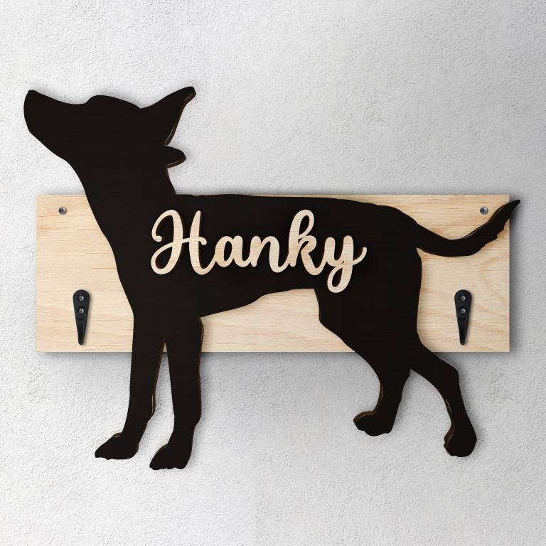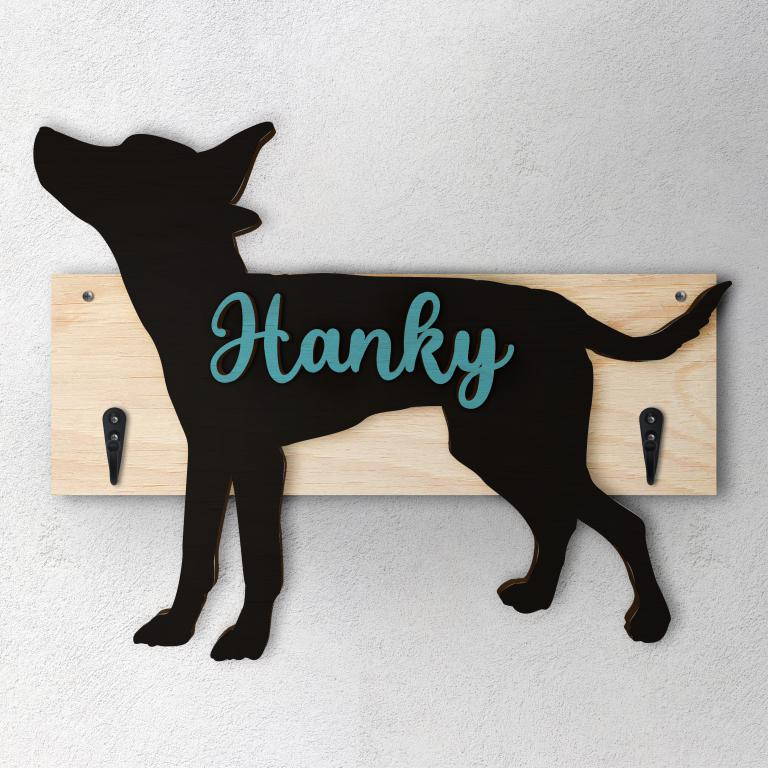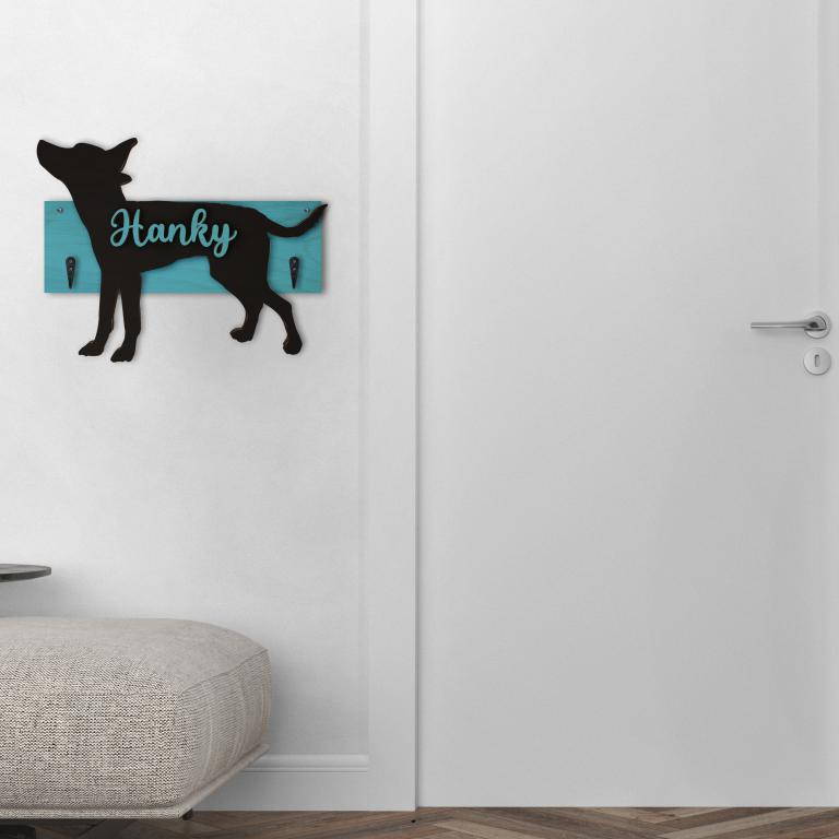 Porta guinzaglio razza cane Prague ratter personalizzato con il nome del tuo cane. Base: legno 6mm, sagoma razza legno 4mm e nome cane legno 6 mm. Sono disponibili diverse varianti di colori quali: Variante A base Nero - Cane Legno - Nome nero Variante B base Legno - Cane Nero - Nome Legno Variante C base Legno - Cane Nero - Nome Blu Variante D base Blu - Cane Nero - Nome Blu Variante E base Rosa - Cane Nero - Nome Rosa
