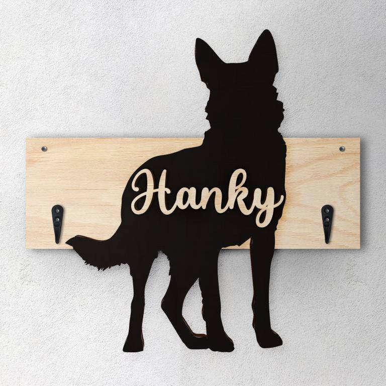 Porta guinzaglio razza cane Field spaniel personalizzato con il nome del tuo cane. Base: legno 6mm, sagoma razza legno 4mm e nome cane legno 6 mm. Sono disponibili diverse varianti di colori quali: Variante A base Nero - Cane Legno - Nome nero Variante B base Legno - Cane Nero - Nome Legno Variante C base Legno - Cane Nero - Nome Blu Variante D base Blu - Cane Nero - Nome Blu Variante E base Rosa - Cane Nero - Nome Rosa