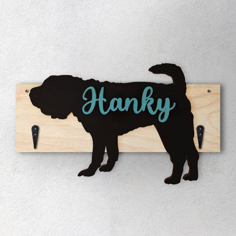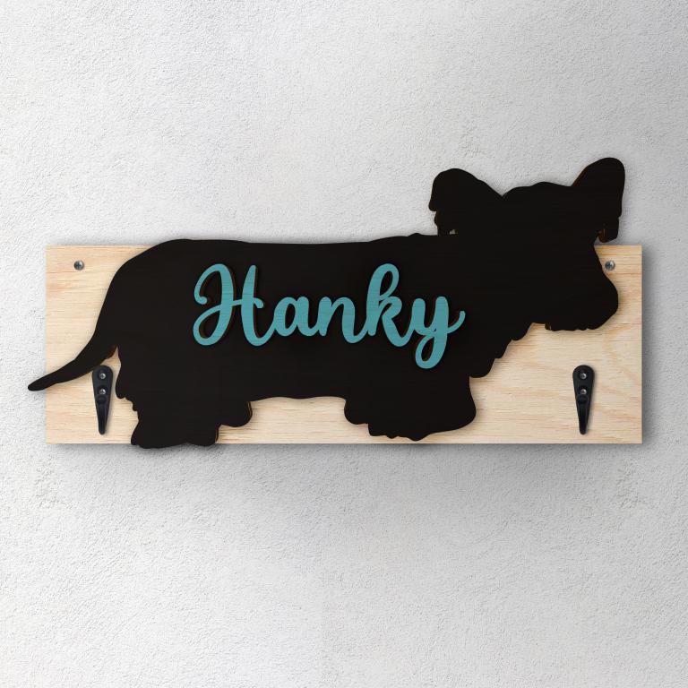 Porta guinzaglio razza cane Skye terrier personalizzato con il nome del tuo cane. Base: legno 6mm, sagoma razza legno 4mm e nome cane legno 6 mm. Sono disponibili diverse varianti di colori quali: Variante A base Nero - Cane Legno - Nome nero Variante B base Legno - Cane Nero - Nome Legno Variante C base Legno - Cane Nero - Nome Blu Variante D base Blu - Cane Nero - Nome Blu Variante E base Rosa - Cane Nero - Nome Rosa