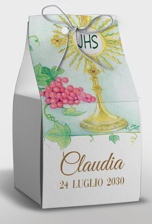 Scatolina porta confetti pre-fustellata e facilissima da montare e personalizzare a casa tua. Ideale per la prima comunione. Istruzioni per il montaggio incluse.