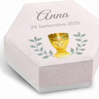 Scatolina porta confetti pre-fustellata e facilissima da montare e personalizzare a casa tua. Ideale per la prima comunione. Istruzioni per il montaggio incluse.