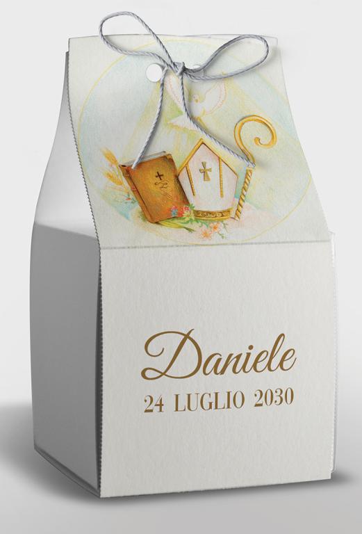 Scatolina porta confetti pre-fustellata e facilissima da montare e personalizzare a casa tua. Ideale per la prima comunione. Istruzioni per il montaggio incluse.