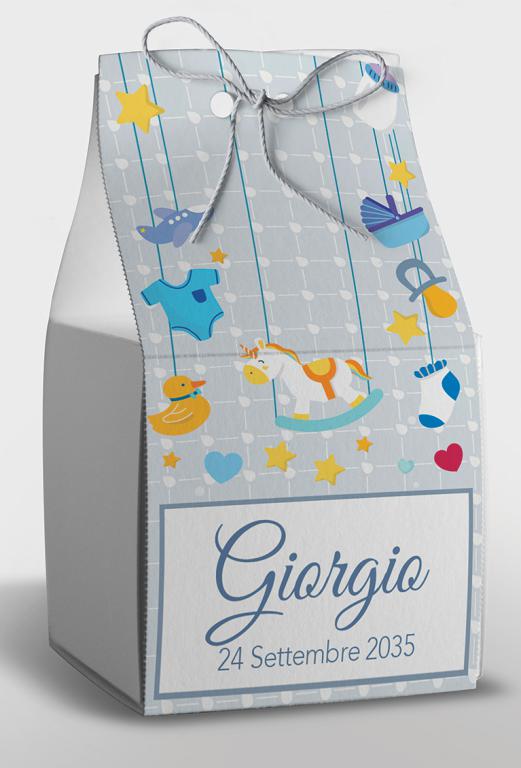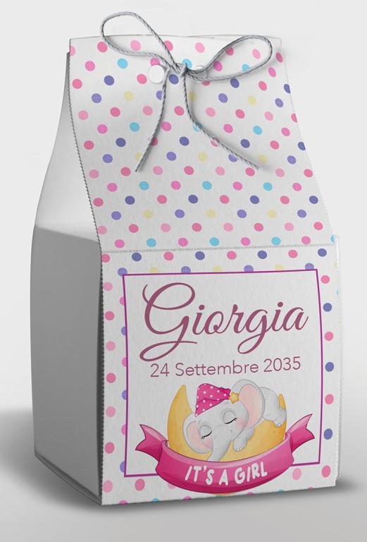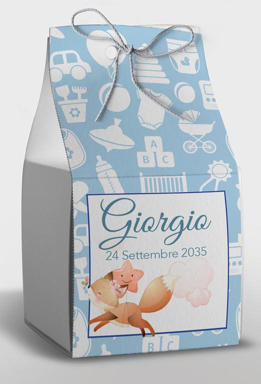 Scatolina porta confetti pre-fustellata e facilissima da montare e personalizzare a casa tua. Ideale per compleanni e nascite. Istruzioni per il montaggio incluse.