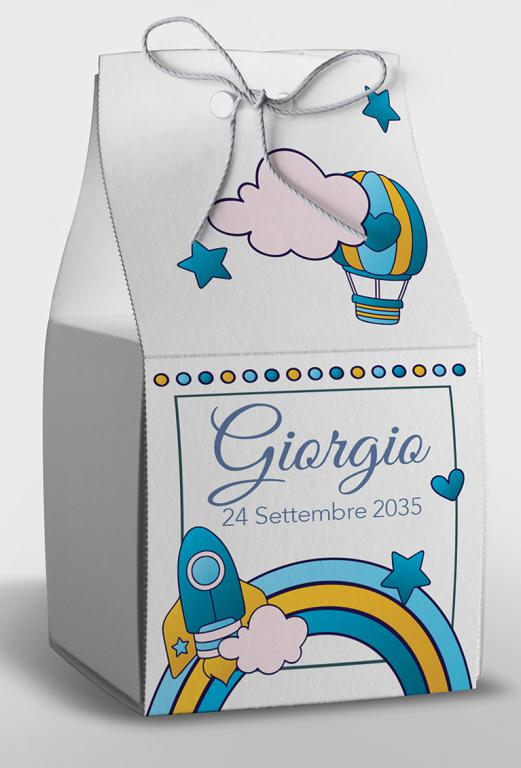 Scatolina porta confetti pre-fustellata e facilissima da montare e personalizzare a casa tua. Ideale per compleanni e nascite. Istruzioni per il montaggio incluse.
