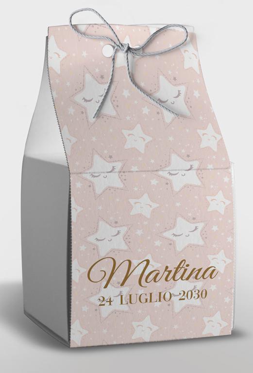 Scatolina porta confetti pre-fustellata e facilissima da montare e personalizzare a casa tua. Ideale per compleanni e nascite. Istruzioni per il montaggio incluse.