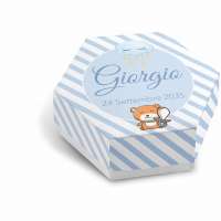 Scatolina porta confetti pre-fustellata e facilissima da montare e personalizzare a casa tua. Ideale per compleanni e nascite. Istruzioni per il montaggio incluse.