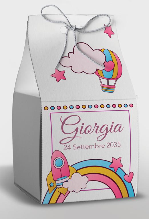 Scatolina porta confetti pre-fustellata e facilissima da montare e personalizzare a casa tua. Ideale per compleanni e nascite. Istruzioni per il montaggio incluse.