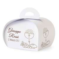 SCATOLINA PORTA CONFETTI COMUNIONE in cartoncino mono patinato alto spessore. Altissima qualità. - Modello cod: FBOX1-0006