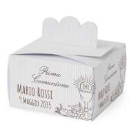 SCATOLINA PORTA CONFETTI COMUNIONE in cartoncino mono patinato alto spessore. Altissima qualità. - Modello cod: FBOX2-0002