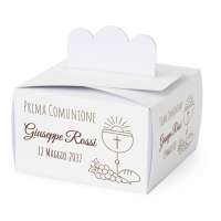 SCATOLINA PORTA CONFETTI COMUNIONE in cartoncino mono patinato alto spessore. Altissima qualità. - Modello cod: FBOX2-0006