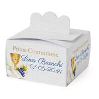 SCATOLINA PORTA CONFETTI COMUNIONE in cartoncino mono patinato alto spessore. Altissima qualità. - Modello cod: FBOX2-0009