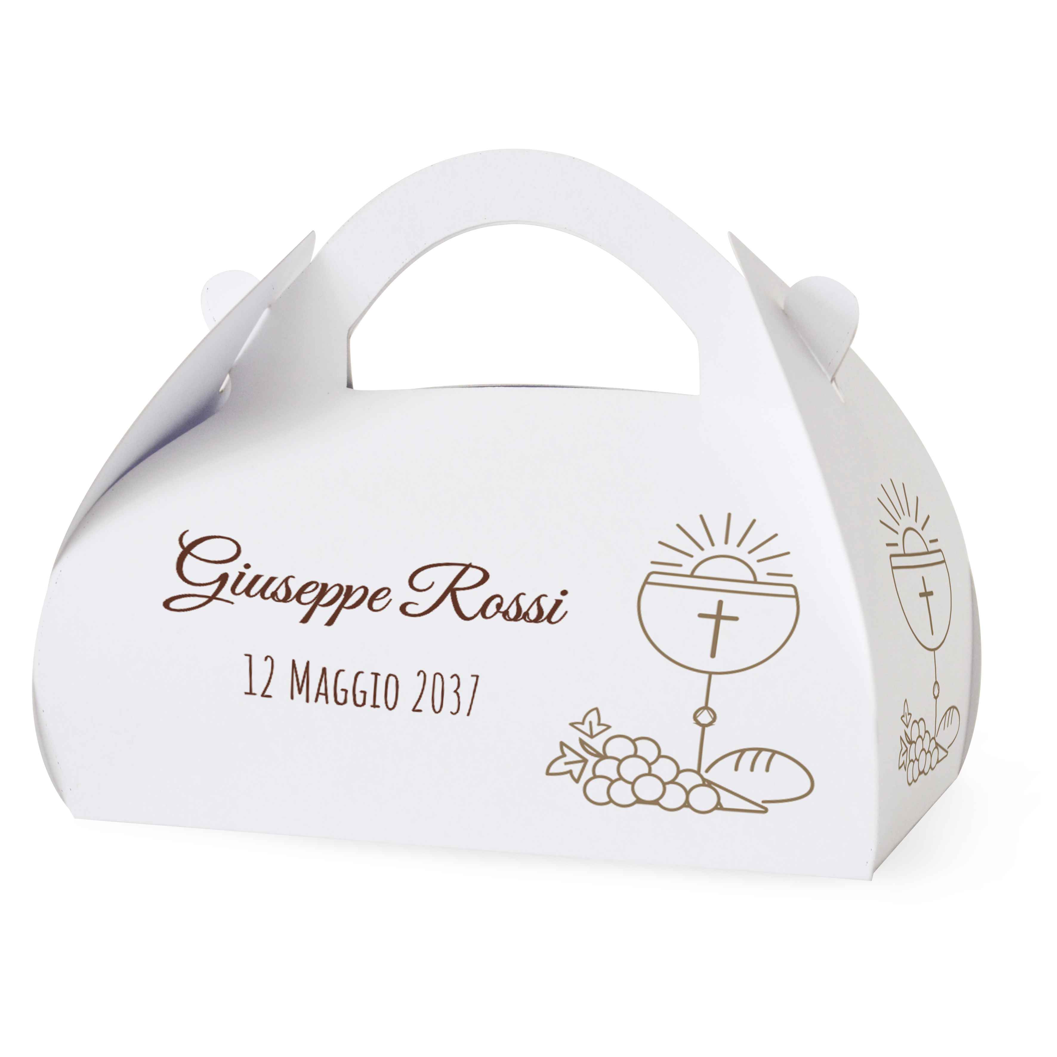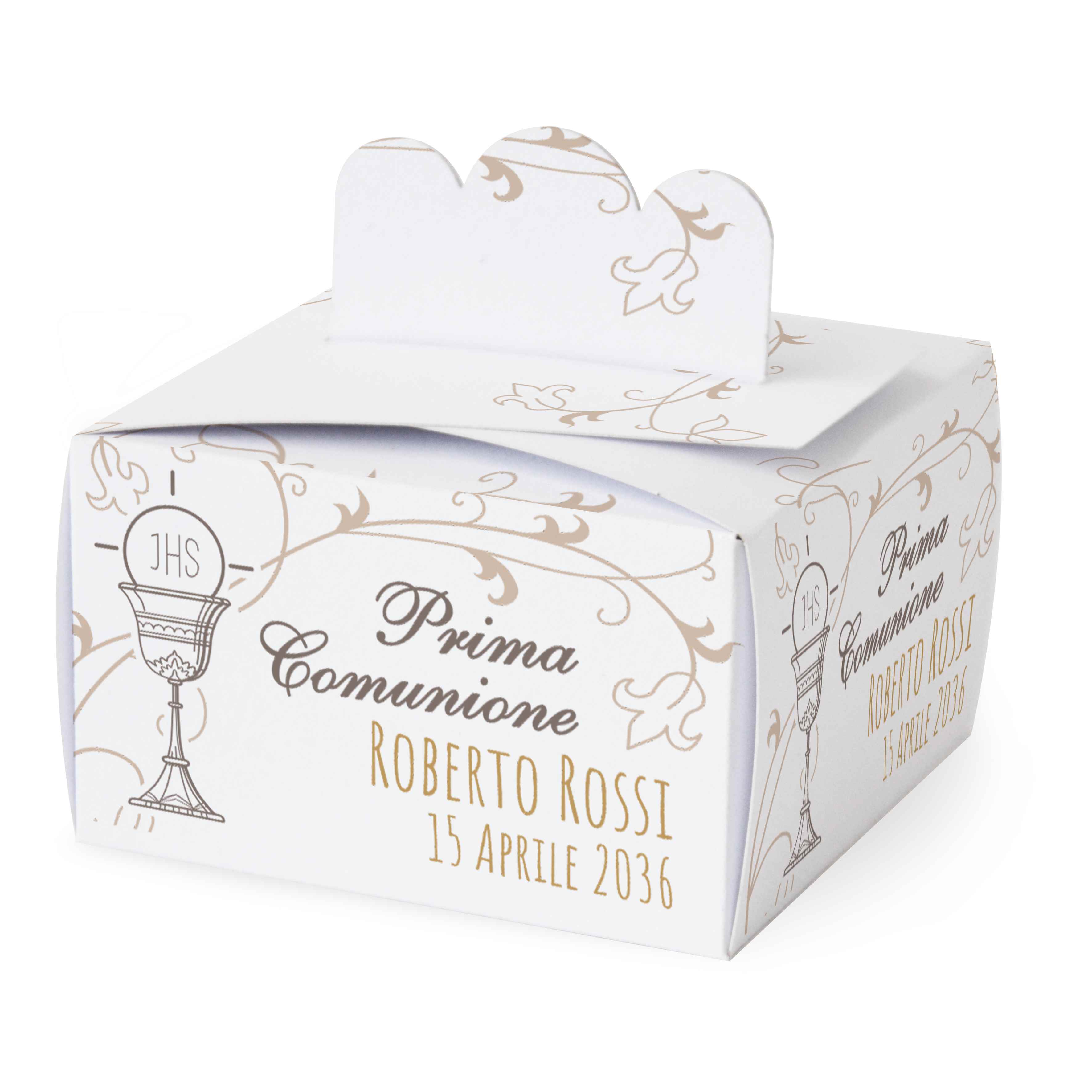 SCATOLINA PORTA CONFETTI COMUNIONE in cartoncino mono patinato alto spessore. Altissima qualità. - Modello cod: FBOX2-0010