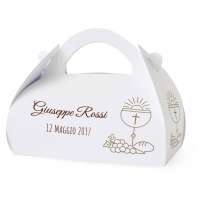 SCATOLINA PORTA CONFETTI COMUNIONE in cartoncino mono patinato alto spessore. Altissima qualità. - Modello cod: FBOX3-0006