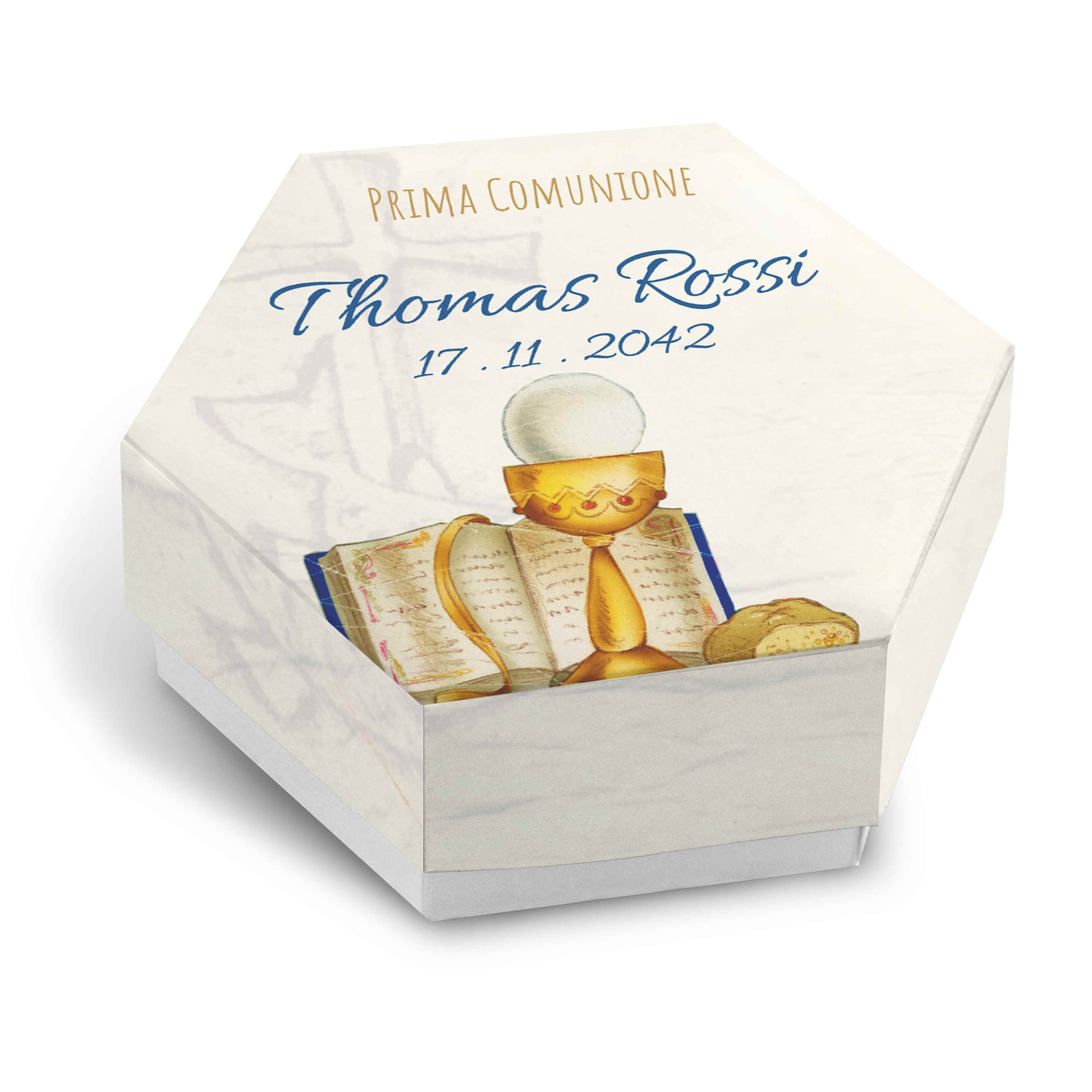 SCATOLINA ESAGONALE PORTA CONFETTI COMUNIONE Ferdinando Famà modello FES-0015