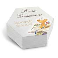 SCATOLINA ESAGONALE PORTA CONFETTI COMUNIONE in cartoncino mono patinato alto spessore. Altissima qualità. - Modello cod: FES-0021