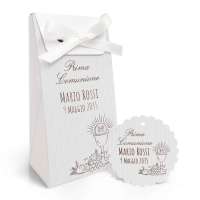 SCATOLINA PORTA CONFETTI COMUNIONE E TAG Ferdinando Famà modello FBUSTAG-0002