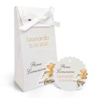 SCATOLINA PORTA CONFETTI COMUNIONE E TAG Ferdinando Famà modello FBUSTAG-0003
