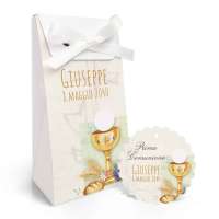 SCATOLINA PORTA CONFETTI COMUNIONE E TAG Ferdinando Famà modello FBUSTAG-0004